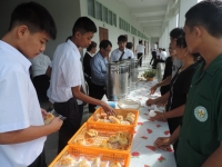 และเครื่องนอนให้กับนักเรียนใหม่ หลังจากนั้น ผอ.สมศักดิ์ จันทร์ศิริ กล่าวรายงานประธานในพิธี