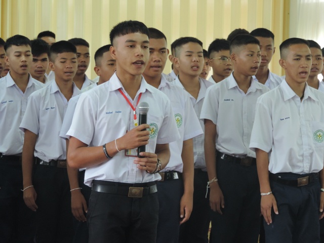 ตัวแทนนักเรียนกล่าวคำปฏิญาณตน ให้ตัวแทนของแต่ละห้องนำพานไปให้คุณครู ซึ่งในปีนี้มีตัวแทนศิษย์เก่านำพานมาไหว้ครูด้วย