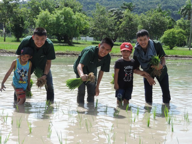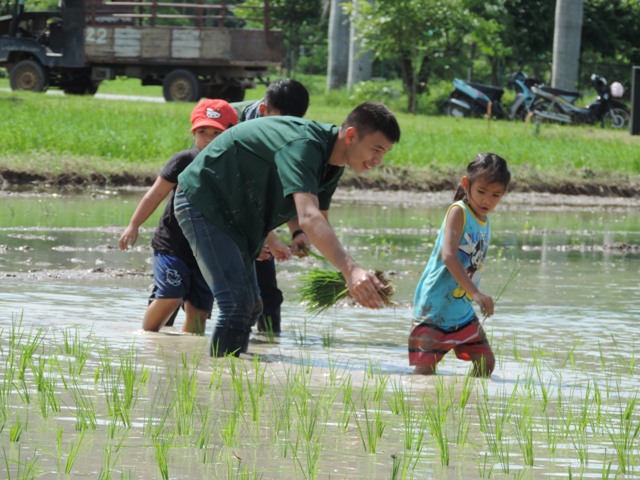 นักเรียนอนุบาล เรียนรู้วิธีการดำนากับรุ่นพี่ชั้น ปวช. งานนี้จึงมีแต่ความสุข