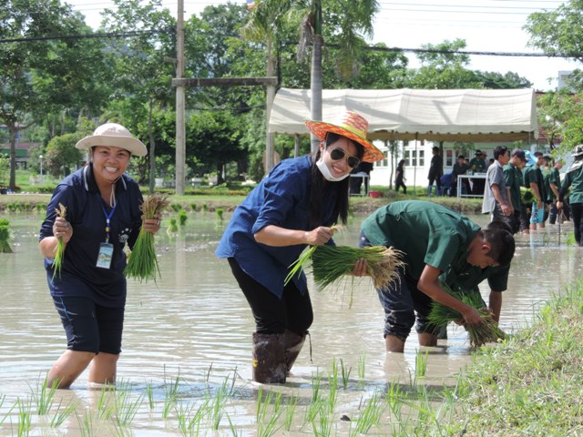 จากโรงเรียนสมถวิล สระบุรี ร่วมดำนาที่วิทยาลัยฯ สร้างความประทับใจให้กับทุกคน