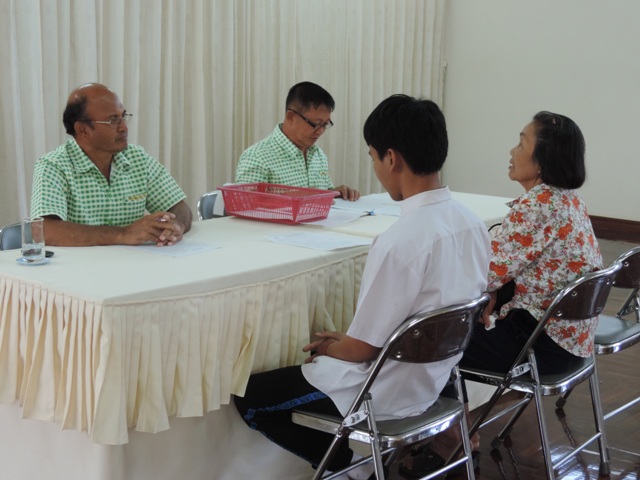 นักเรียนเข้าสอบสัมภาษณ์ พร้อมผู้ปกครอง และจากนั้นก็มีการประชุมรวมเพื่อแนะนำในเรื่อง  ต่างๆ ให้กับ นักเรียน   เพื่อเตรียมตัวที่จะมาศึกษาต่อที่วิทยาลัยฯ ของเรา  หลังจากที่สอบผ่านการคัดเลือก