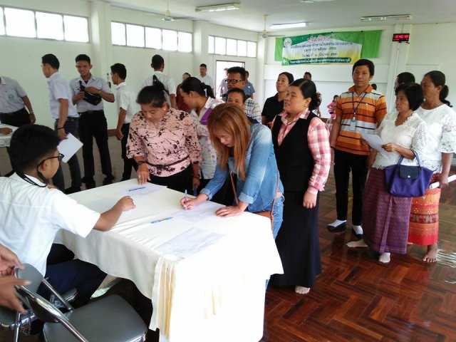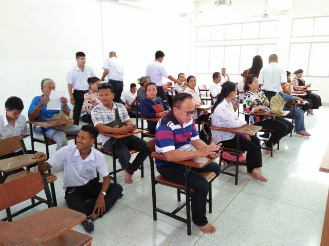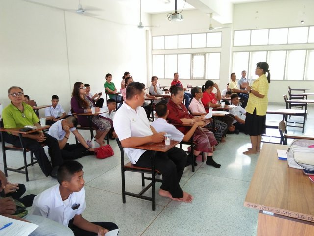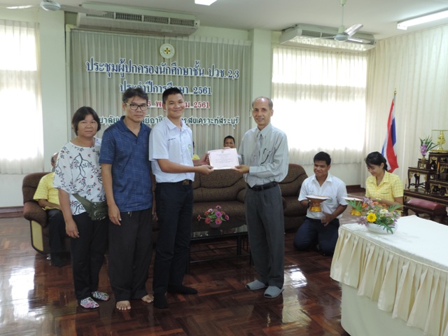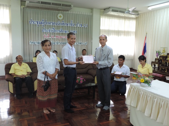 นักเรียนและผู้ปกครอง พบครูที่ปรึกษา เพื่อรับทราบผลการเรียนและความประพฤติของนักเรียน หลังจากนั้นนักเรียนพร้อมผู้ปกครองเข้าห้องประชุม