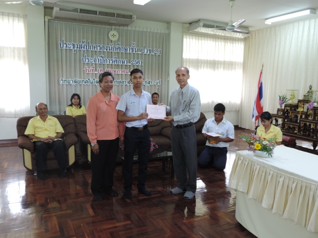 และมอบเกียรติบัตร ให้กับนักเรียนที่มีผลการเรียนดีเด่น ประจำปีการศึกษา 2560 ก่อนเข้าร่วมประชุม