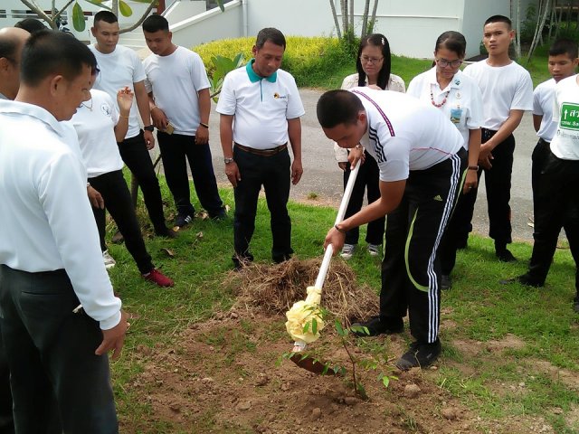 พร้อมกับนักเรียน หลังจากนั้นได้ปลูกต้นรวงผึ้ง ซึ่งเป็นต้นไม้ประจำรัชกาลที่ 10