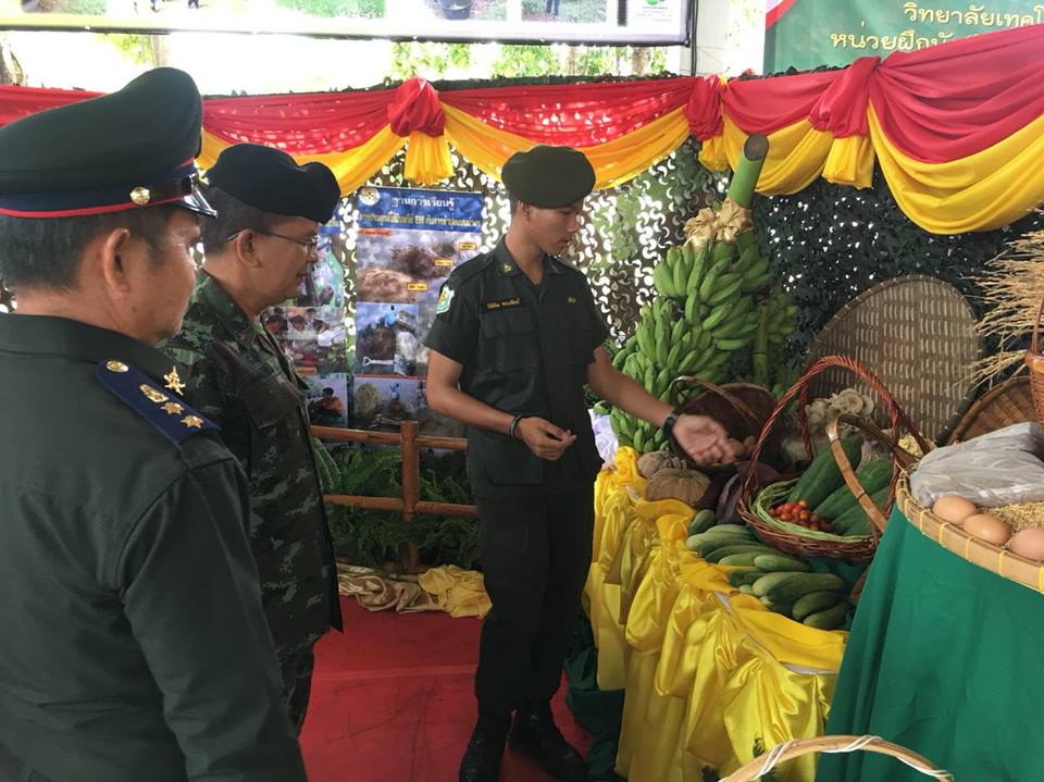 คุณครูณรงวิทย์ คนยืน นำตัวแทนนักศึกษาวิชาทหาร ร่วมแสดงนิทรรศการทางการเกษตร