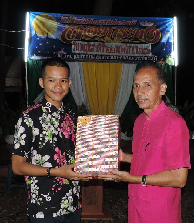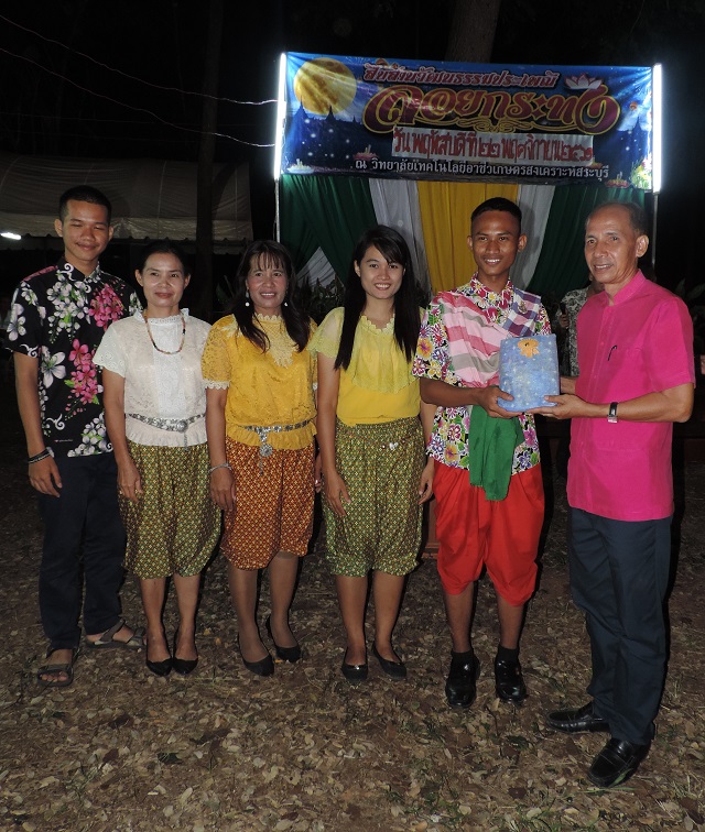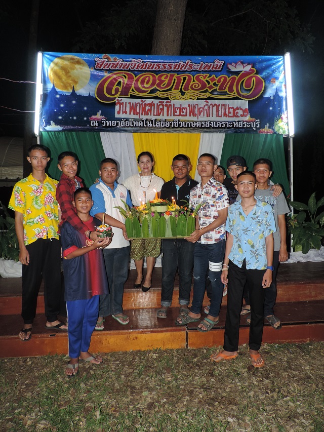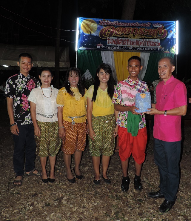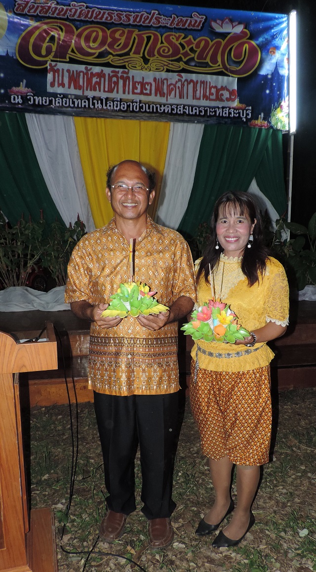 ณ บริเวณบ่อน้ำ หน้าสวนป่าผะยูงวิทยาลัยฯ โดยมีหัวหน้าฝ่ายต่างๆ ของมูลนิธิฯ และเจ้าหน้าที่หอไทยคิวเซ เจ้าหน้าที่ศูนย์เกษตรฯ ร่วมกิจกรรมลอยกระทงที่วิทยาลัยฯ หลังจากลอยกระทงแล้ว ทางวิทยาลัยฯ