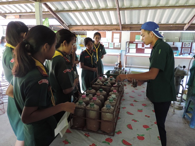 ฐานที่ 2 เยี่ยมชมการสาธิตทำโบกาฉิ   ฐานที่ 3 เยี่ยมชมสัตวบาล  ฐานที่ 4  เยี่ยมชมการเพาะเห็ด ฐานที่ 5 เยี่ยมชม