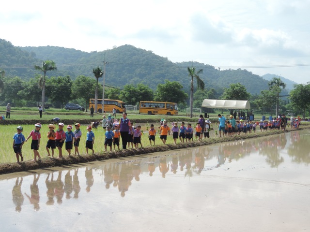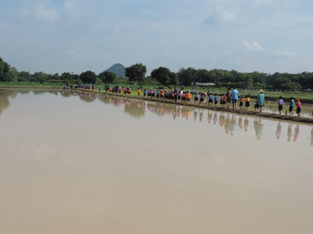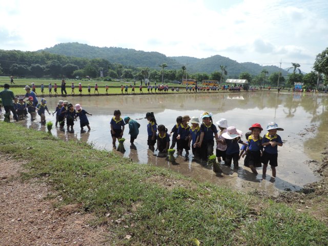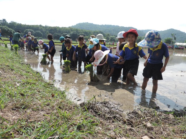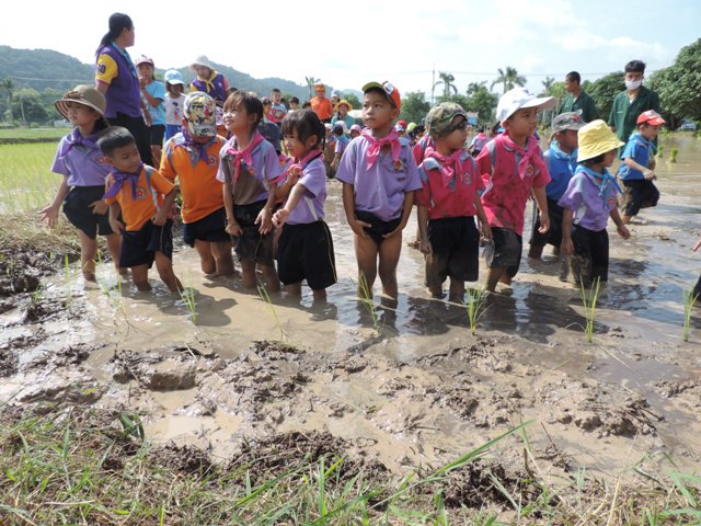 ร่วมกิจกรรมดำนากับเด็กนักเรียน จากโรงเรียนต่างๆ อีก 3 โรงเรียน ซึ่งได้แก่โรงเรียนอนุบาลสมถวิล