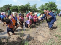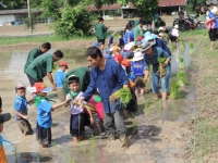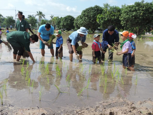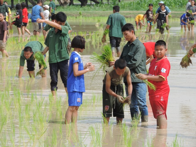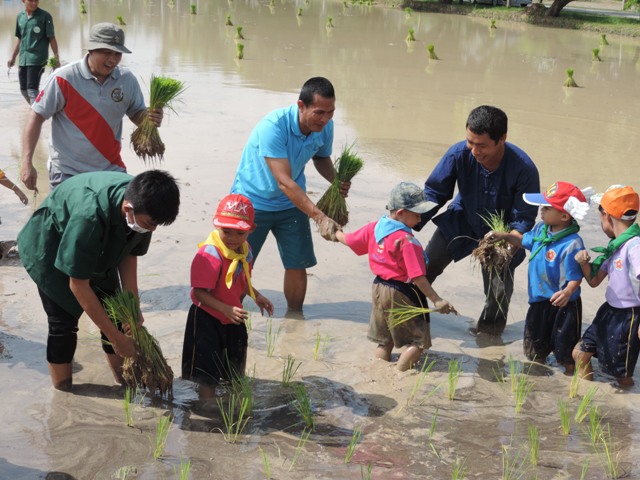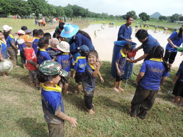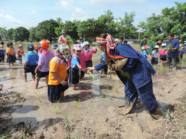ร่วมกิจกรรมดำนากับเด็กนักเรียน จากโรงเรียนต่างๆ อีก 3 โรงเรียน ซึ่งได้แก่โรงเรียนอนุบาลสมถวิล
