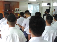 ได้รับฟังคำให้โอวาทจากรัฐมนตรีว่าการกระทรวงศึกษาธิการ โดยพร้อมเพรียงกัน เริ่มกิจกรรมเวลา 09.09 น. ประธานในพิธี
