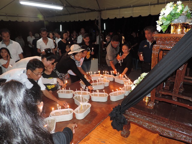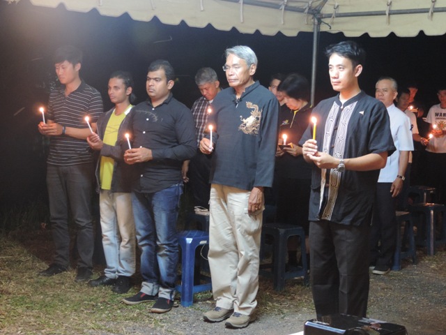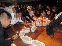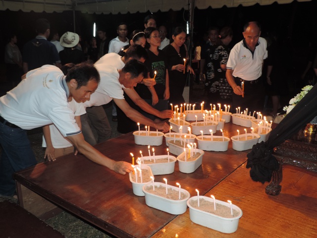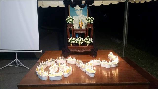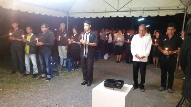 หลังจากนั้นร่วมกันจุดเทียนเพื่อแสดงความอาลัยและร่วมกันร้องเพลงสรรเสริญพระบารมี