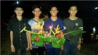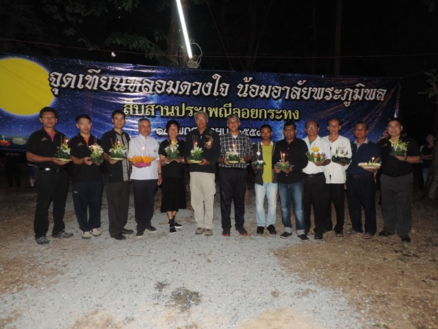แล้วนำไปปักที่ภาชนะที่เตรียมไว้ ซึ่งได้จัดเรียงเป็นเลขเก้าไทยหลังจากนั้นจึงเริ่ม ลอยกระทงและรับประทานอาหารว่างด้วยกัน