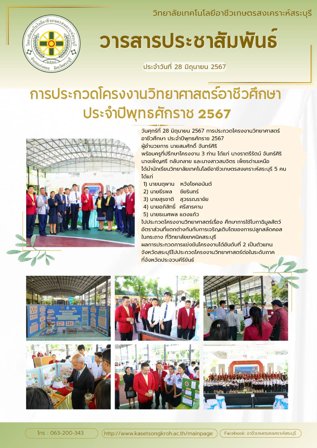 โครงงานวิทยาศาสตร์อาชีวศึกษา ประจำปีการศึกษา 2567 ได้อันดับที่ 2 แข่งขันต่อระดับภาคจังหวัดประจวบศิริ
