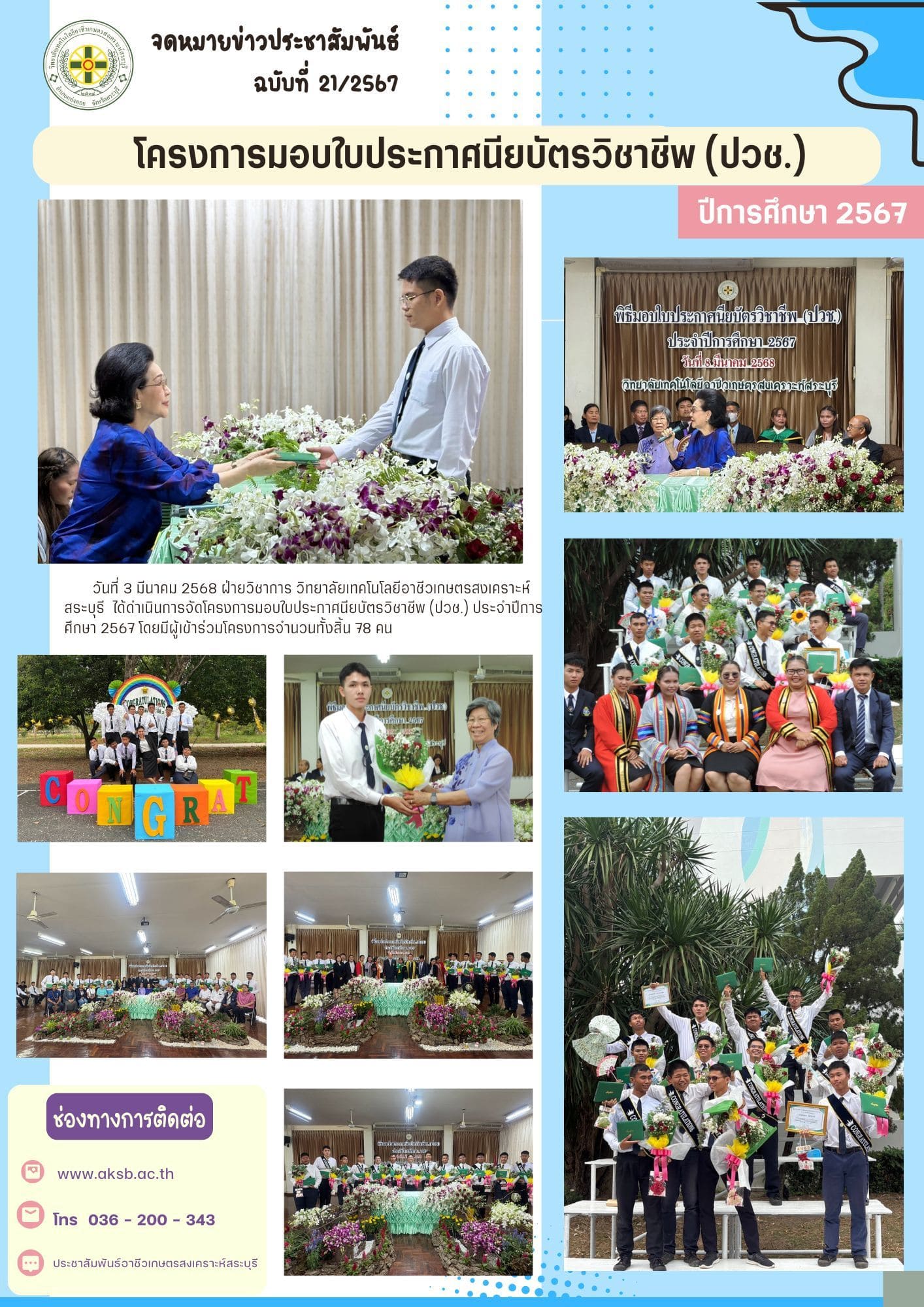 โครงการมอบใบประกาศนียบัตรวิชาชีพ (ปวช.) ปีการศึกษา 2567