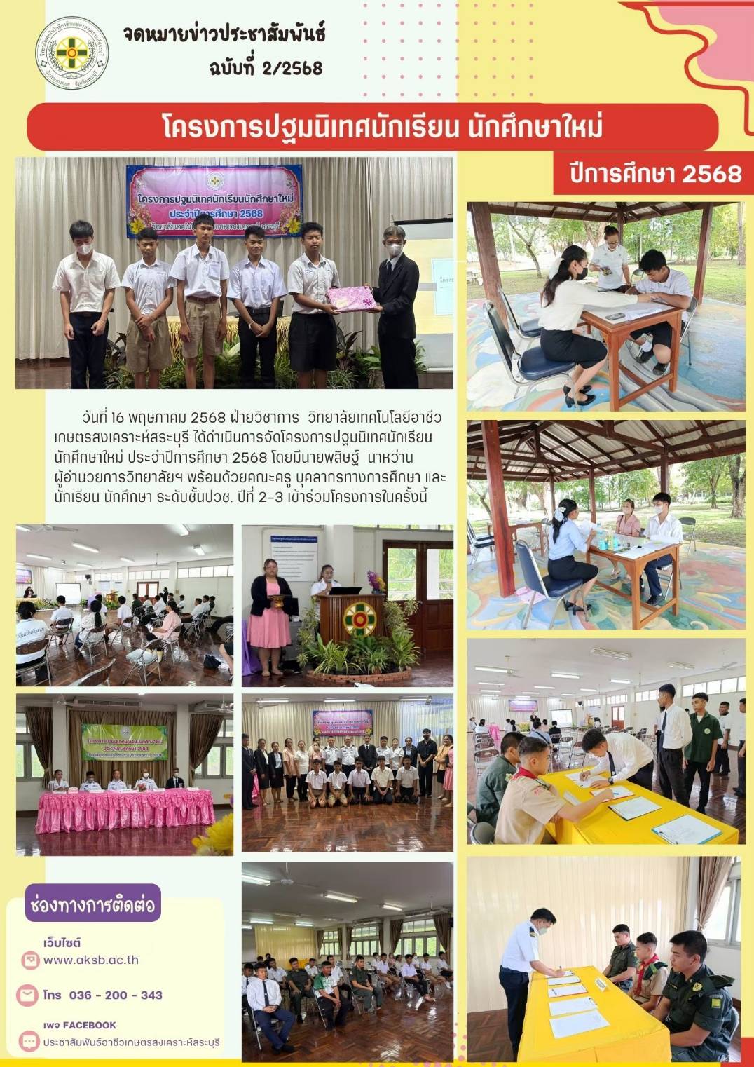 โครงการปฐมนิเทศนักเรียน นักศึกษาใหม่ ปีการศึกษา 2568